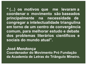 “(...) Tem por finalidade a cultura da língua, da literatura, especialmente do Triângulo Mineiro, e o estudo dos problemas sociais e científicos, a união dos intelectuais do Brasil Central, a difusão de suas obras e conhecimentos gerais (...)”